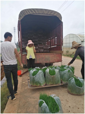 2018年7月16日至2018年9月10日的生长周期里,红葱种植户杨老板在电竞牛集团特派员的指导下,其红葱种植基地进行电竞牛产品应用示范,每亩按照80KG腐熟蛋白生物有机肥+40KG调酸补钙农用微生物菌剂+2KG农益健100农用微生物菌剂的用量,在耕地前将三个产品充分拌匀,均匀撒施到示范地块,接着用耕地机进行耕地,然后理墒盖膜进行播种。