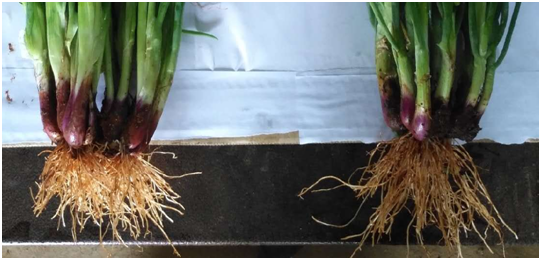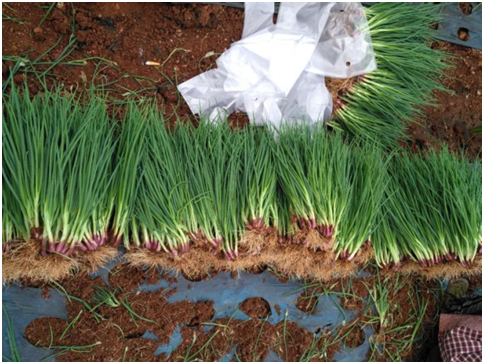 历经54天,红葱示范田长势良好,示范地块植株整齐,大小均匀,根系发达并且旺盛,叶片颜色深,品相较好,通过统计植株高度平均在30-36cm,每棵红葱平均分蘖15个葱头左右,相比对比地块平均多出4个葱头左右,亩产量2.3吨,相较于本地红葱同期产量要高出400-500KG!